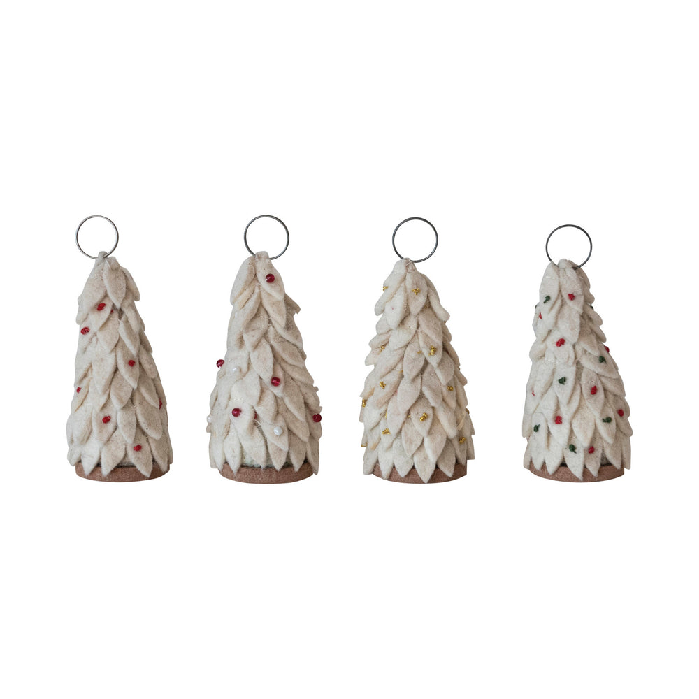 Add festive charm to your holiday table with this set of 4 handmade felt wool Christmas tree place card and photo holders. Each features a colorful felt tree on a sturdy wood base with blank paper cards to personalize names or messages. Compact and elegant, they bring warmth and welcome to any gathering. Packaged in a box, they’re ready to gift or store for next year’s celebrations.