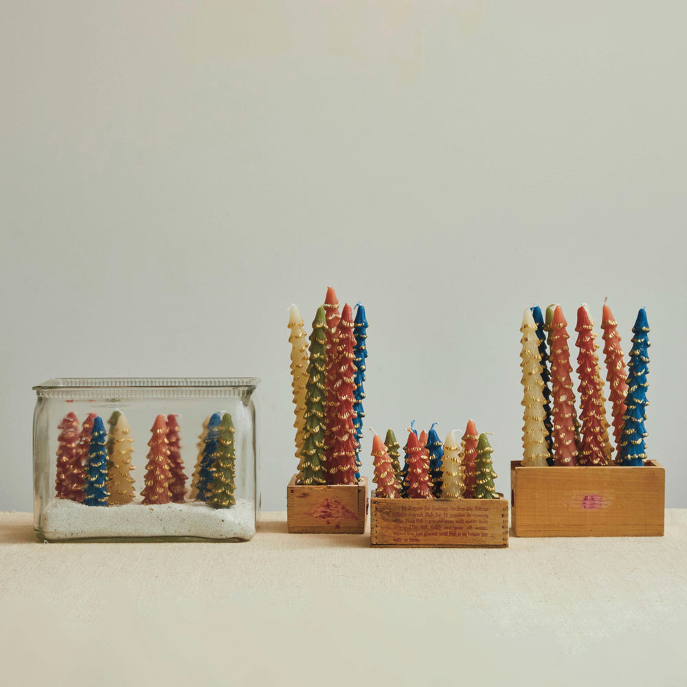 Unscented Tree Shaped Taper Candles in Box, Green, Set of 2