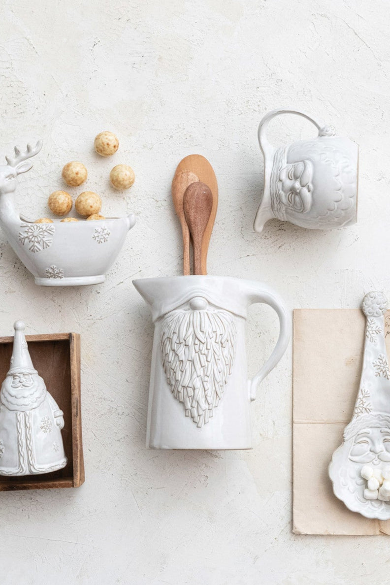 1 Quart Embossed Stoneware Gnome Shaped Pitcher (Each One Will Vary)