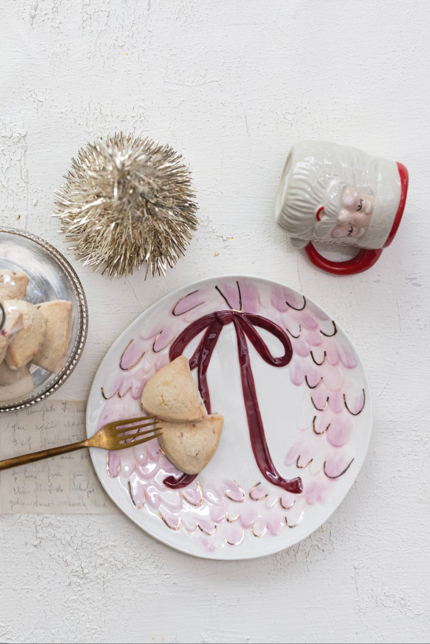 Stoneware Serving Platter with Wreath, Bow & Gold Electroplating ©