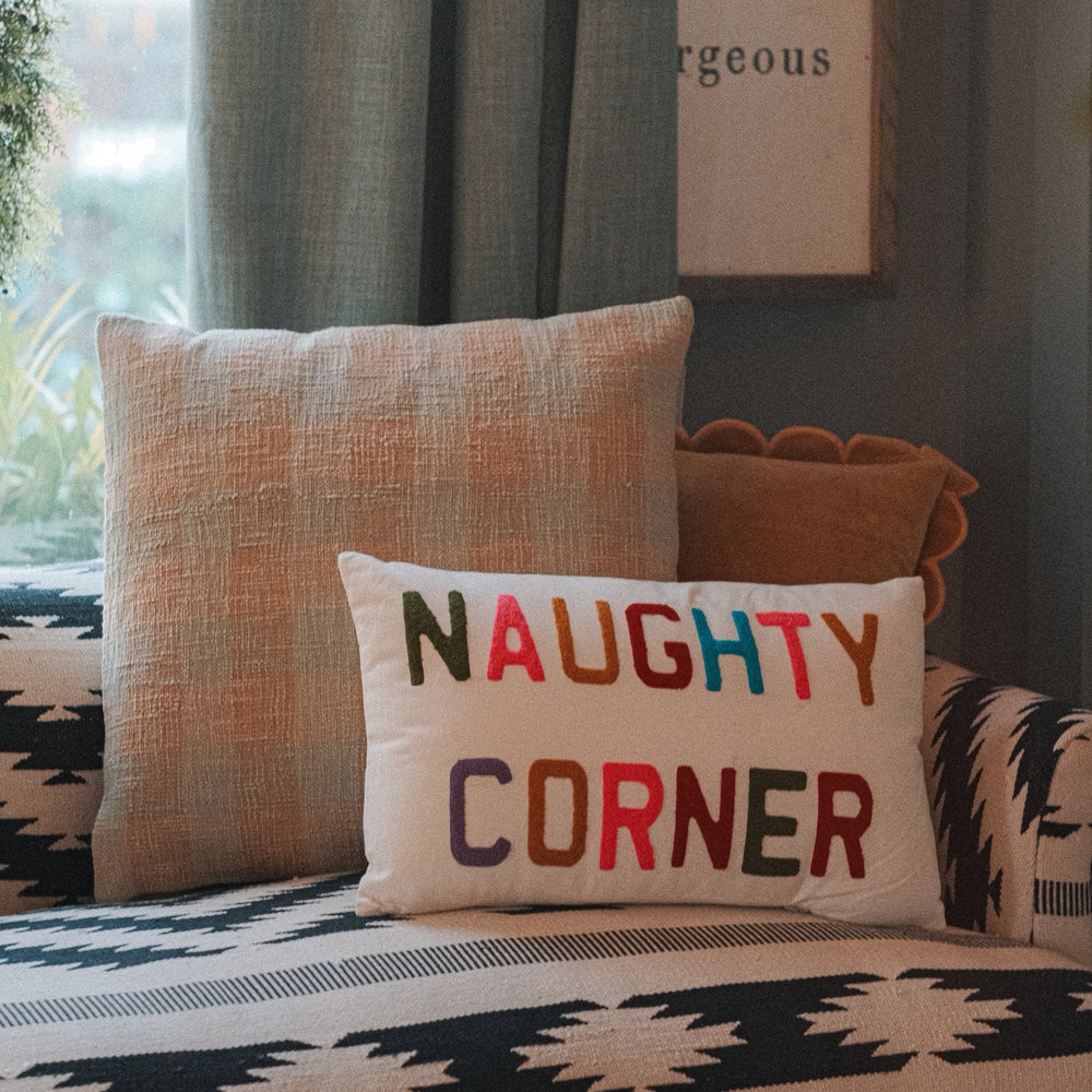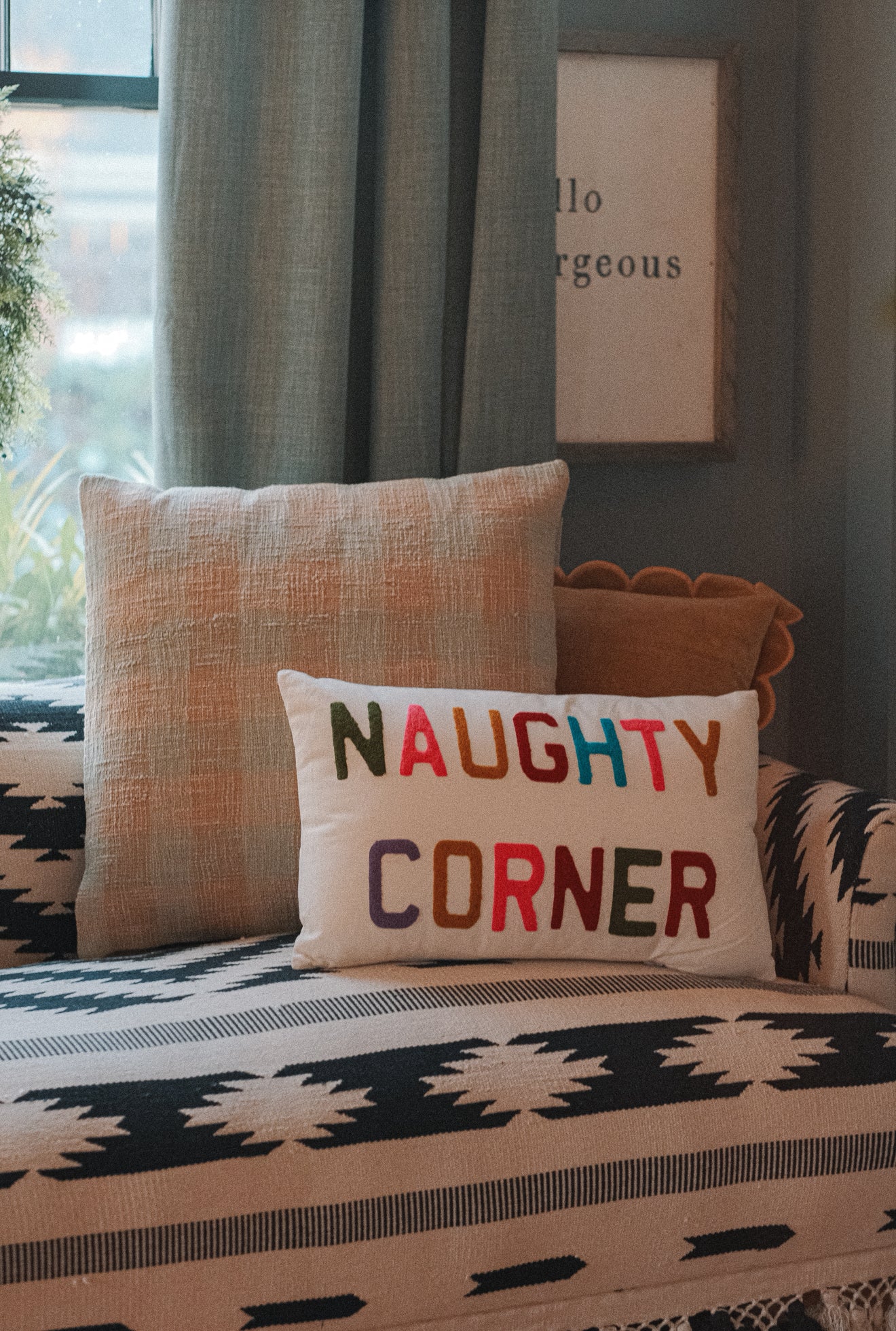 18" Square Cotton Printed Pillow w/ Embroidery, Corduroy Back & Piping ©