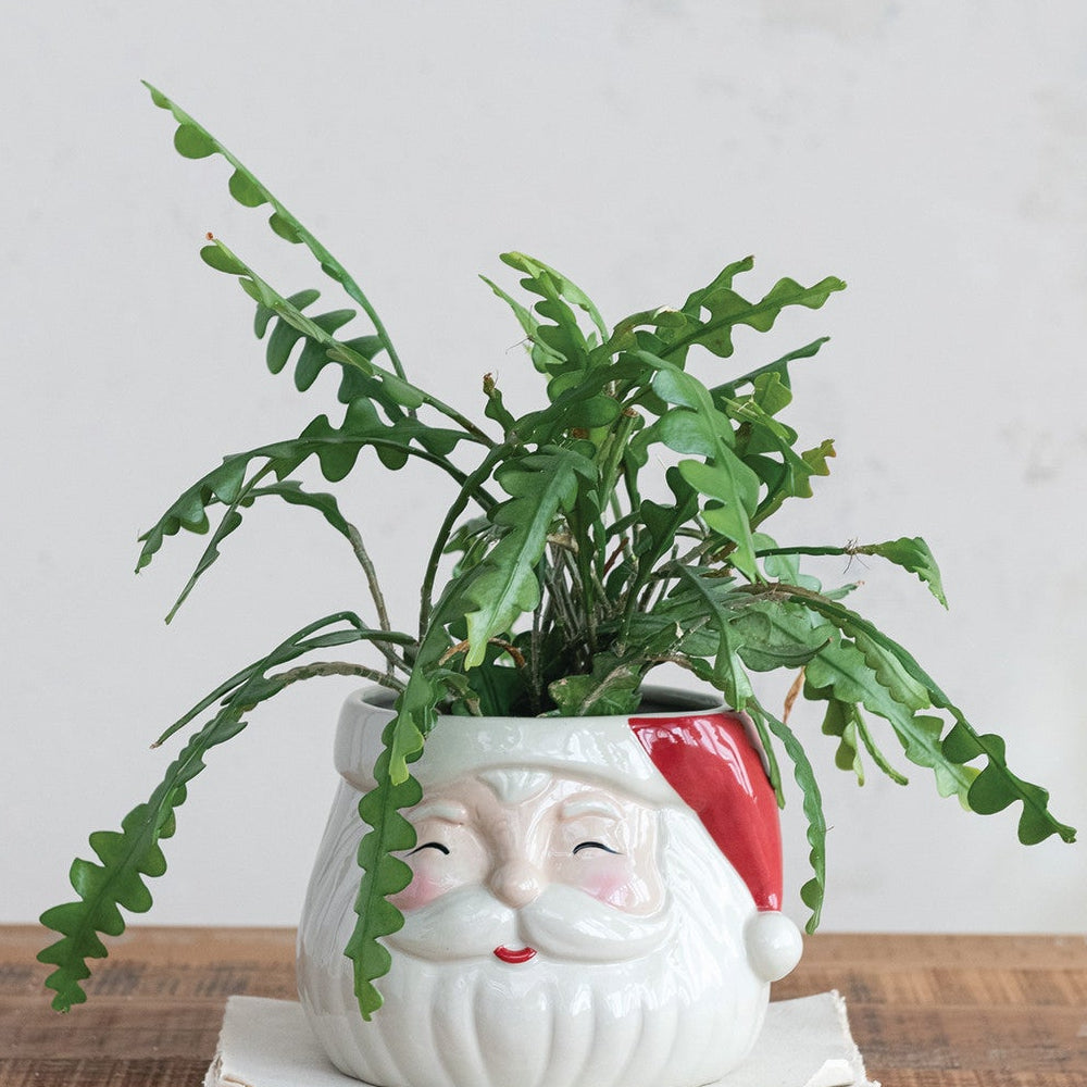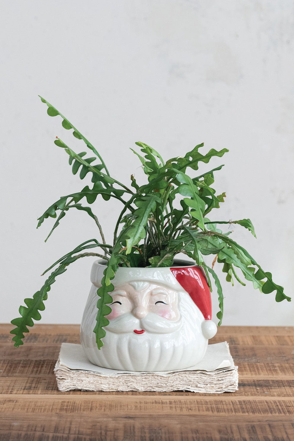 Stoneware Santa Head Shaped Planter, Red & White (Holds 5" Pot)