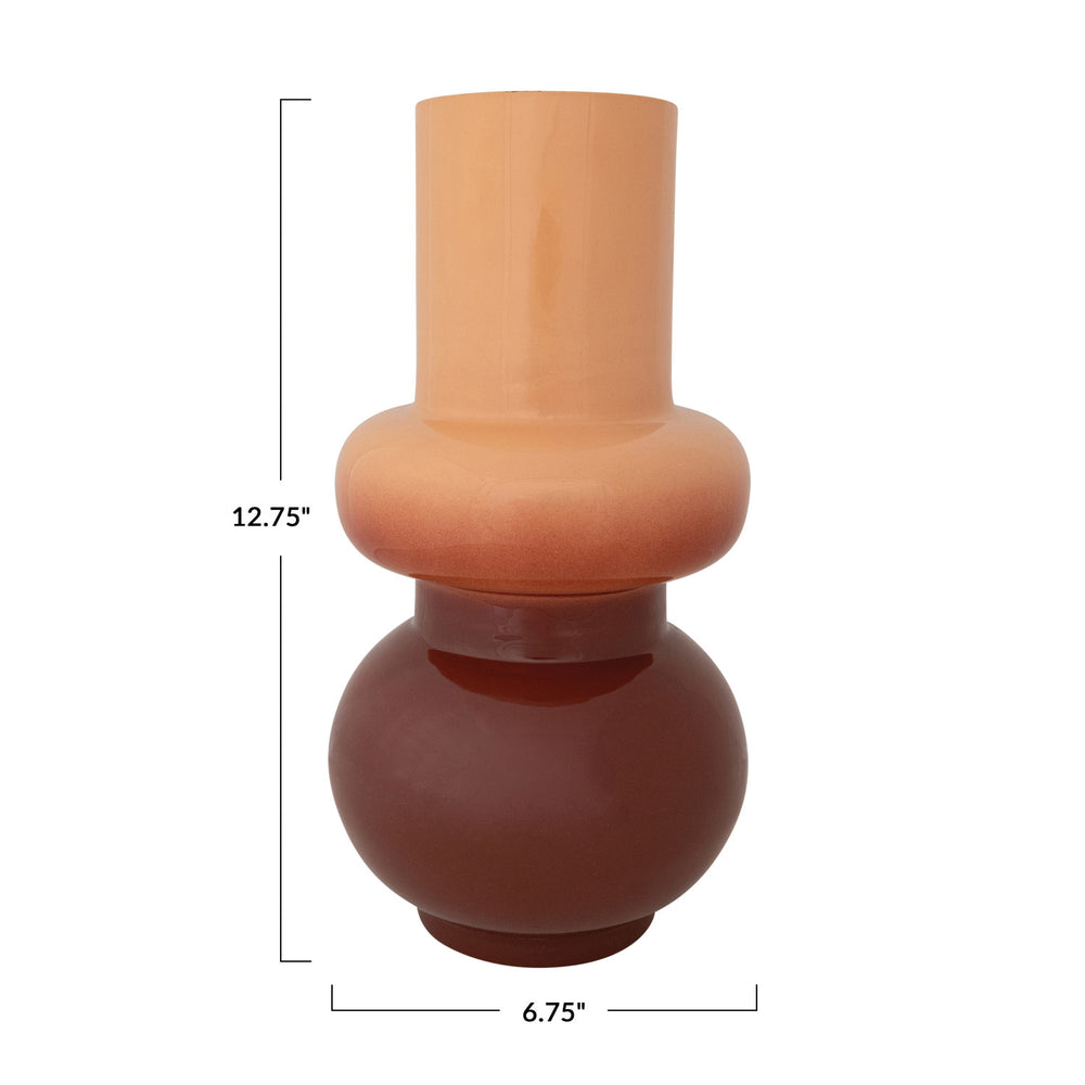 This ombre vase adds a splash of color indoors or outdoors with its rust and nude shades. Made from enameled metal, it’s both stylish and sturdy.