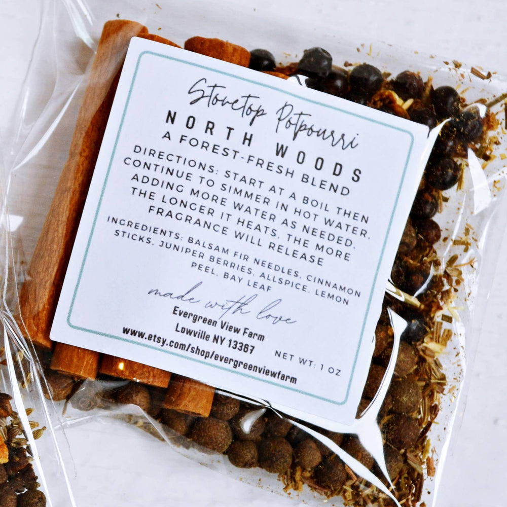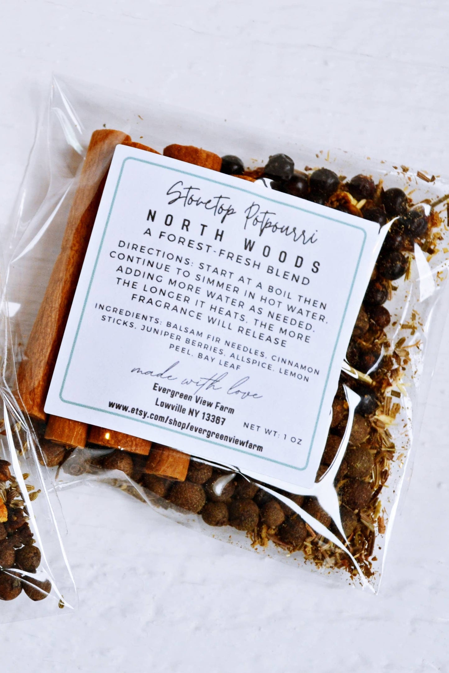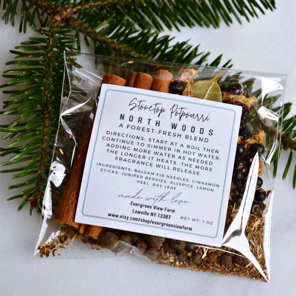 NORTH WOODS a fresh & festive blend with hints of the forest: balsam fir, juniper berries, cinnamon, allspice, lemon peel, bay leaf