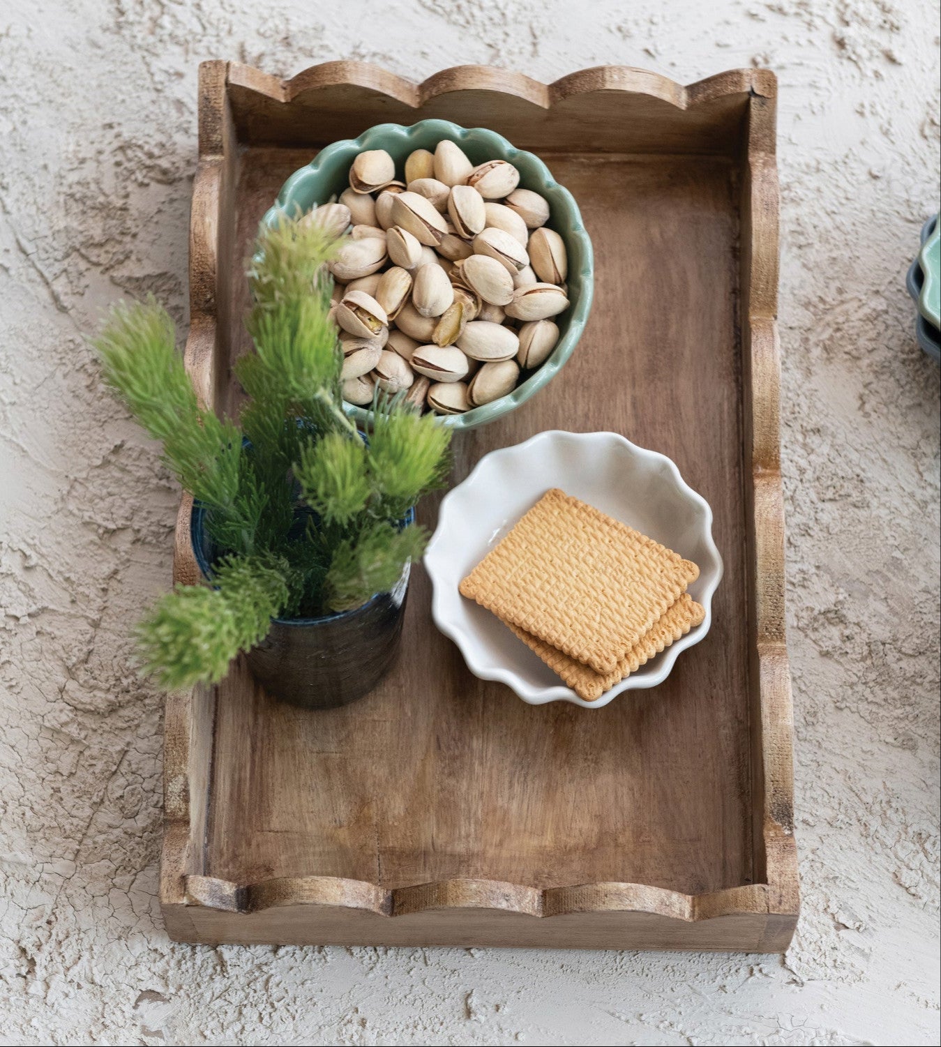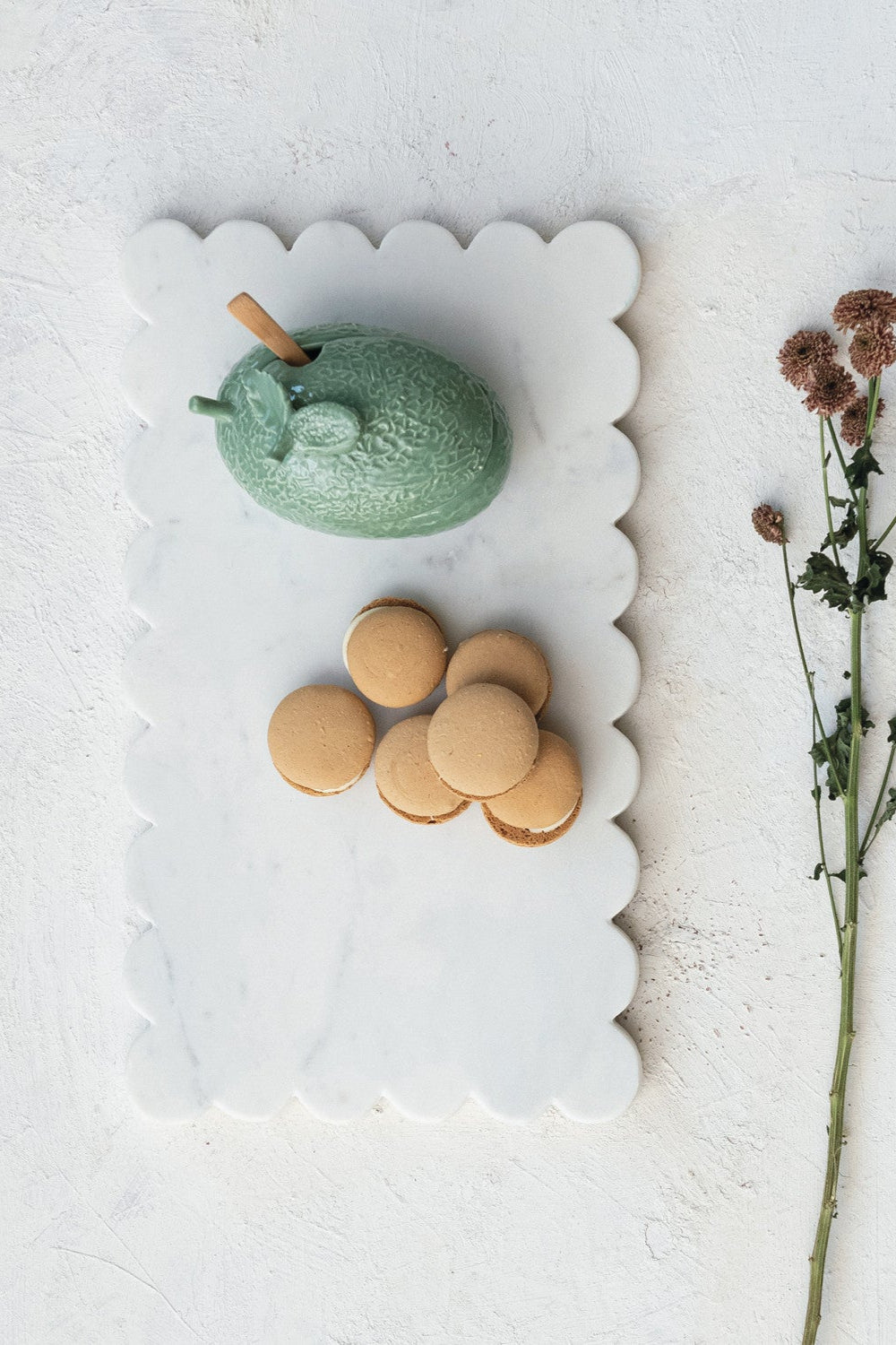 Marble Cheese/Cutting Board w/ Scalloped Edge, White