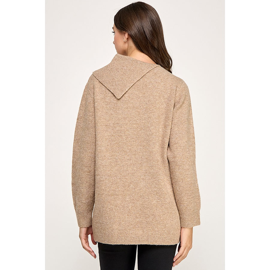 Wrap up in effortless elegance with our Cozy Asymmetric Mock Neck Sweater! This oversized knit top features a flattering high collar with a unique notched detail, long sleeves, and a subtle side slit for added movement—perfect for layering over jeans or leggings. Crafted from soft, premium knit fabric, it's a fall and winter essential for casual outings or cozy days in!