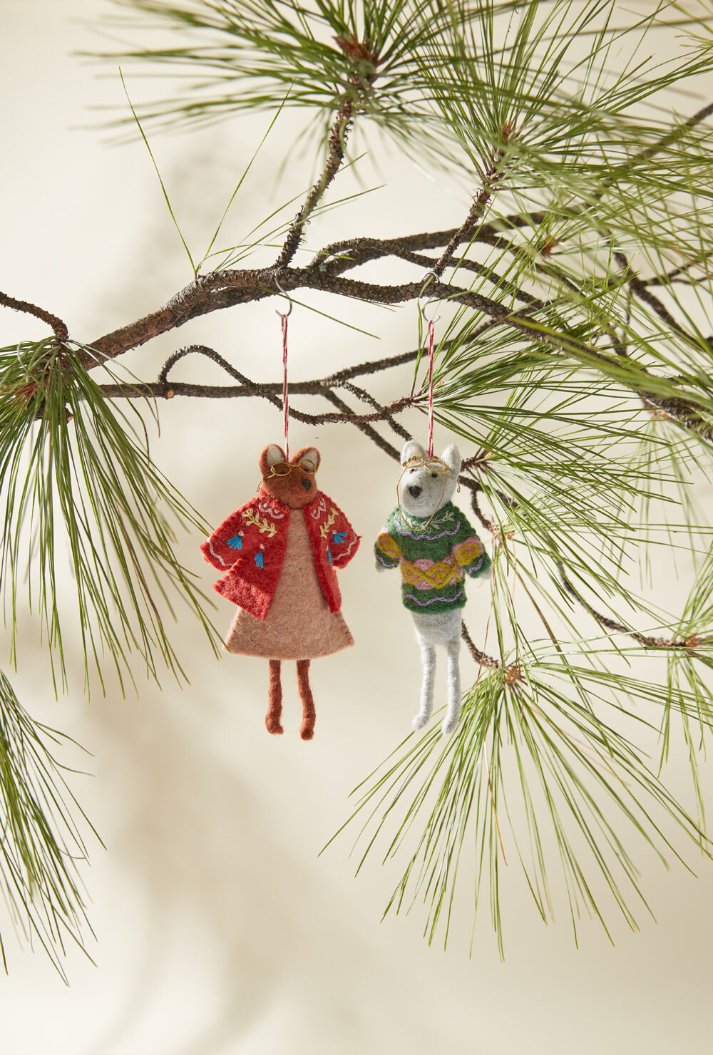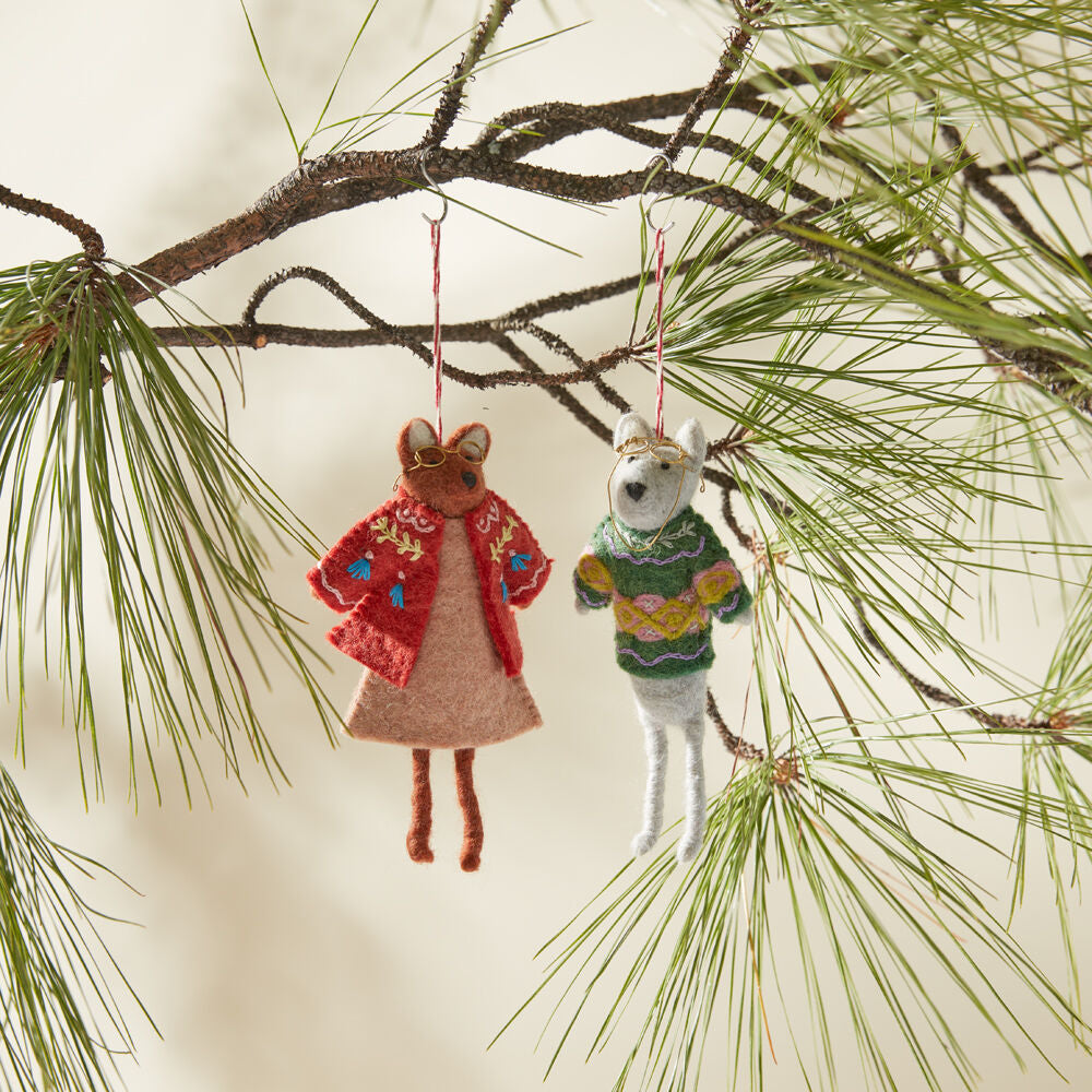 Deck your tree with the bespeckled E+E Felt Ornament Collection, handmade in Nepal. Featuring two of our beloved E+E characters as felt ornaments—Eloise the fox and Beatrice the bear—each wears an embroidered sweater, adding a charming touch to your Christmas tree. Explore the full E+E family to deck the halls, shelves, and tables with these playful faces.