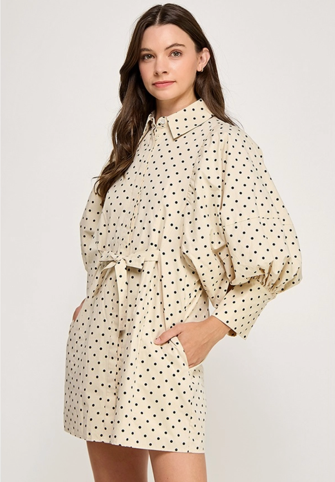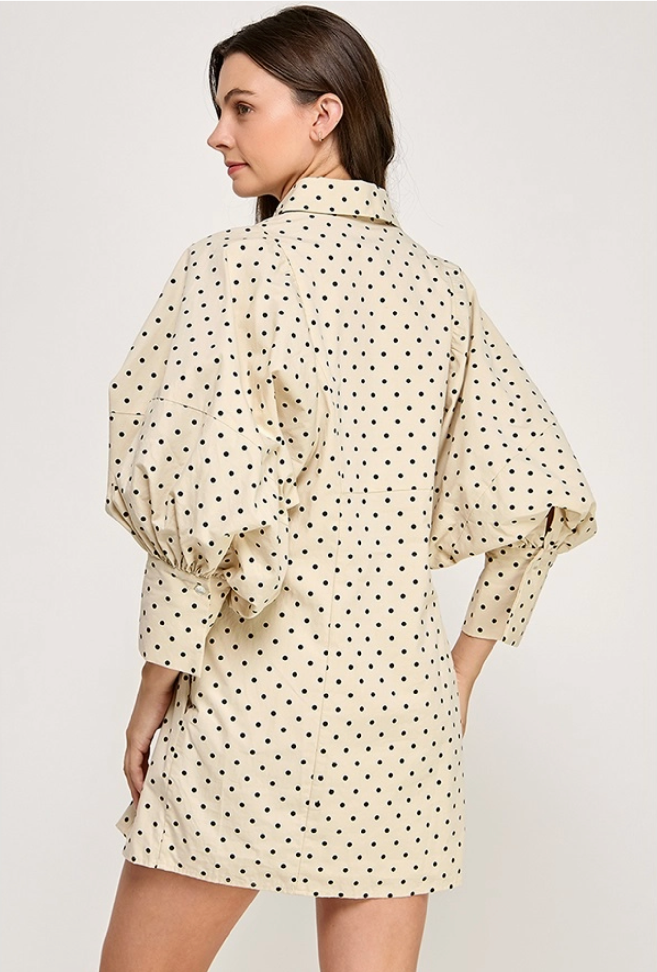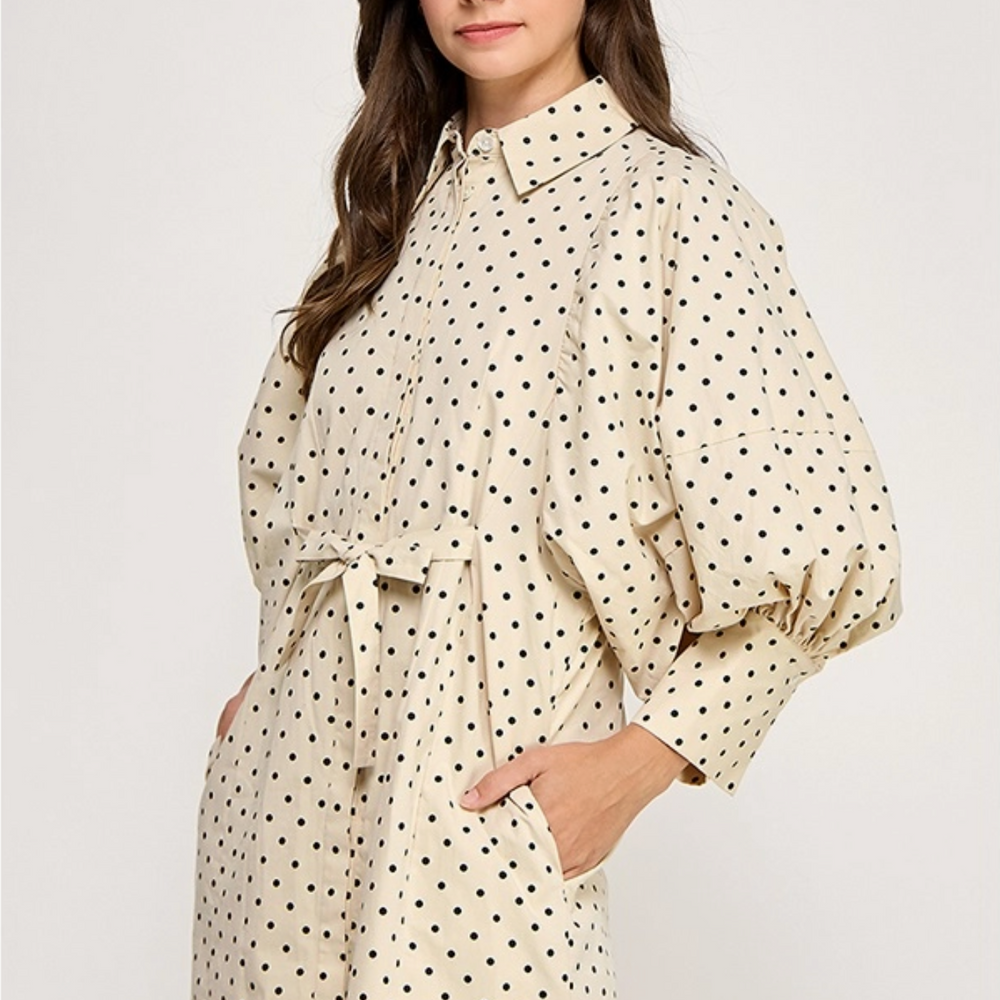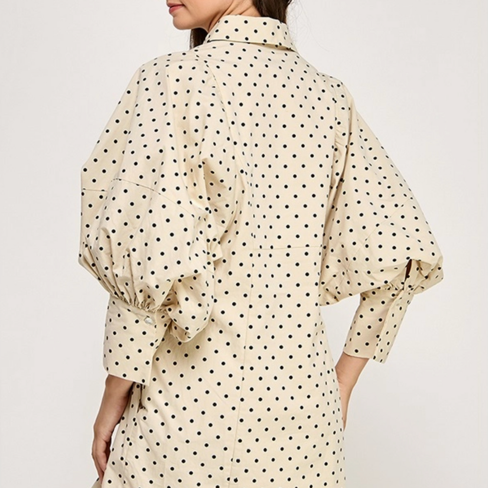 This playful shirt dress features charming bubble sleeves that add a fun and flirty flair to your look.